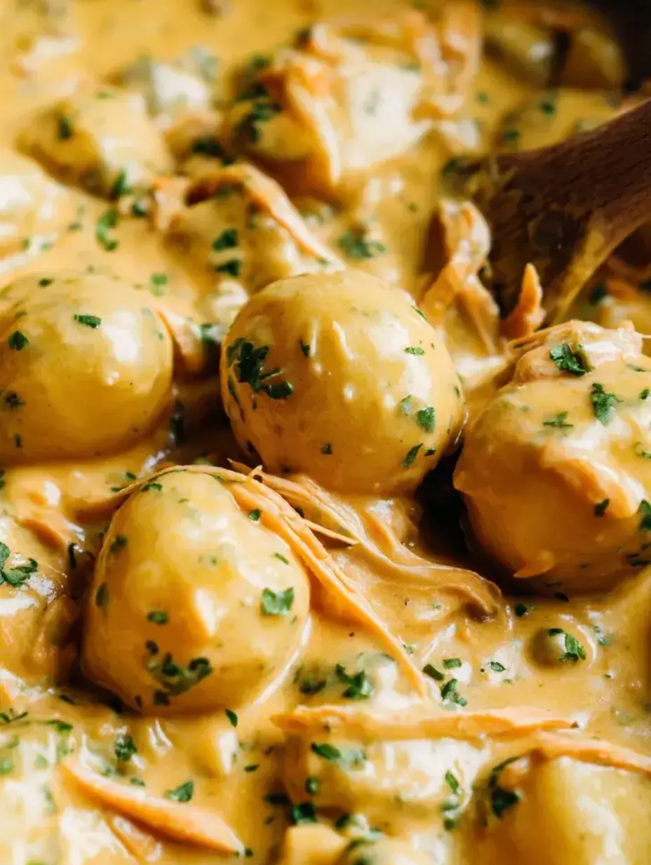 - Carefully fold the cooked potatoes into the cream sauce, making sure each potato gets covered. Let everything warm up for 2-3 minutes, stirring gently so nothing sticks. Finish by sprinkling fresh chopped parsley on top right before you serve it to make it look and taste brighter.