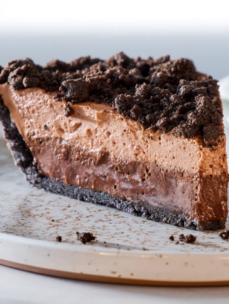 This pie tastes best when it's cool but not straight-from-the-fridge cold. Take it out about 20 minutes before you plan to eat it so the flavors can wake up. Add a spoonful of barely sweetened whipped cream on top for a nice color contrast. Want to make it extra fancy? Sprinkle some cocoa powder on the plate and toss on a few fresh raspberries or mint leaves to pop against all that chocolate.